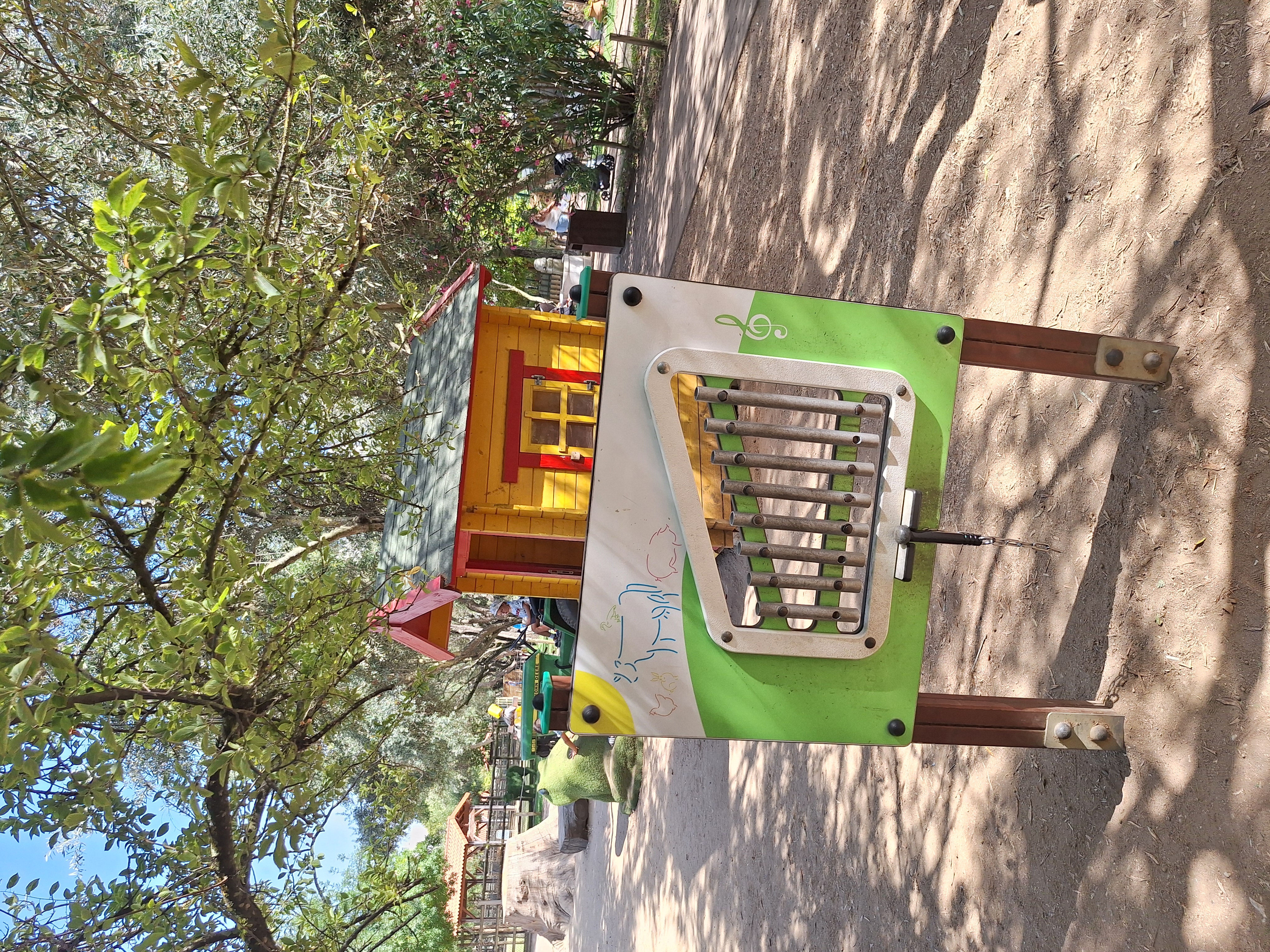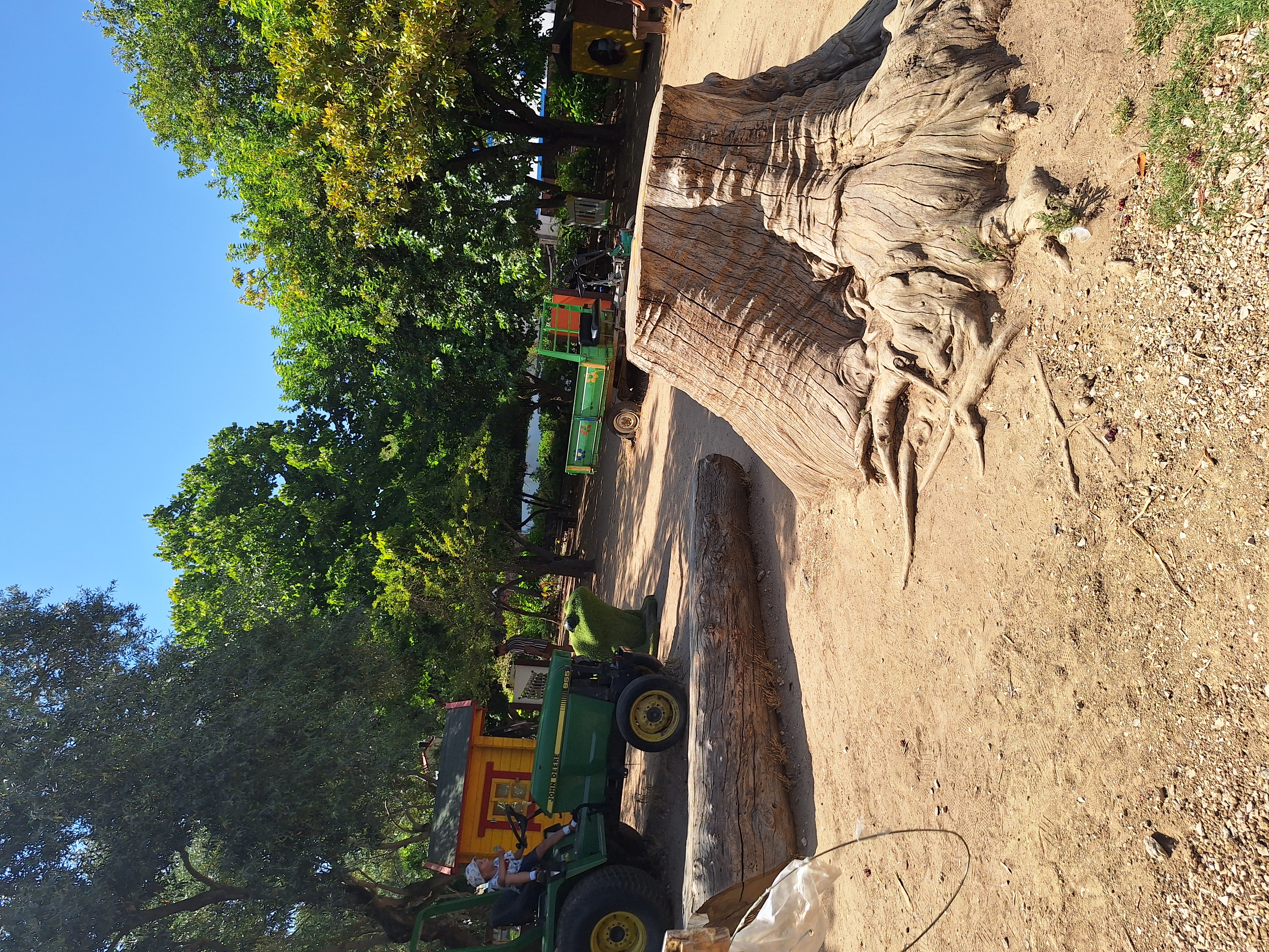 농기구모양 놀이시설에 앉아서 노는 아이들