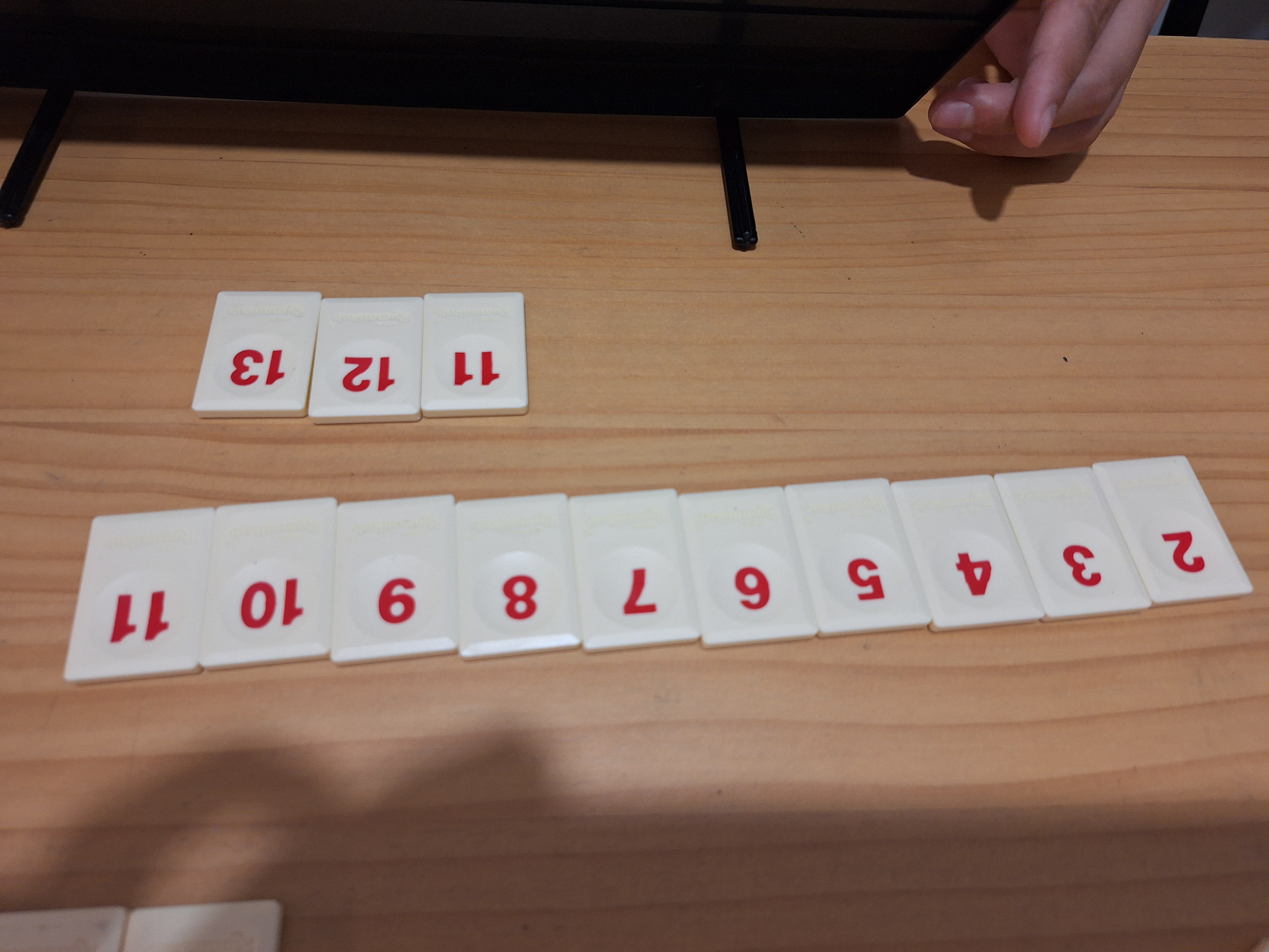 3. 14개씩 뽑고 남은 타일은 엎어두고 각자 타일을 뽑아서 순서를 정하고 시계방향으로 돌아가면서 타일을 내립니다.