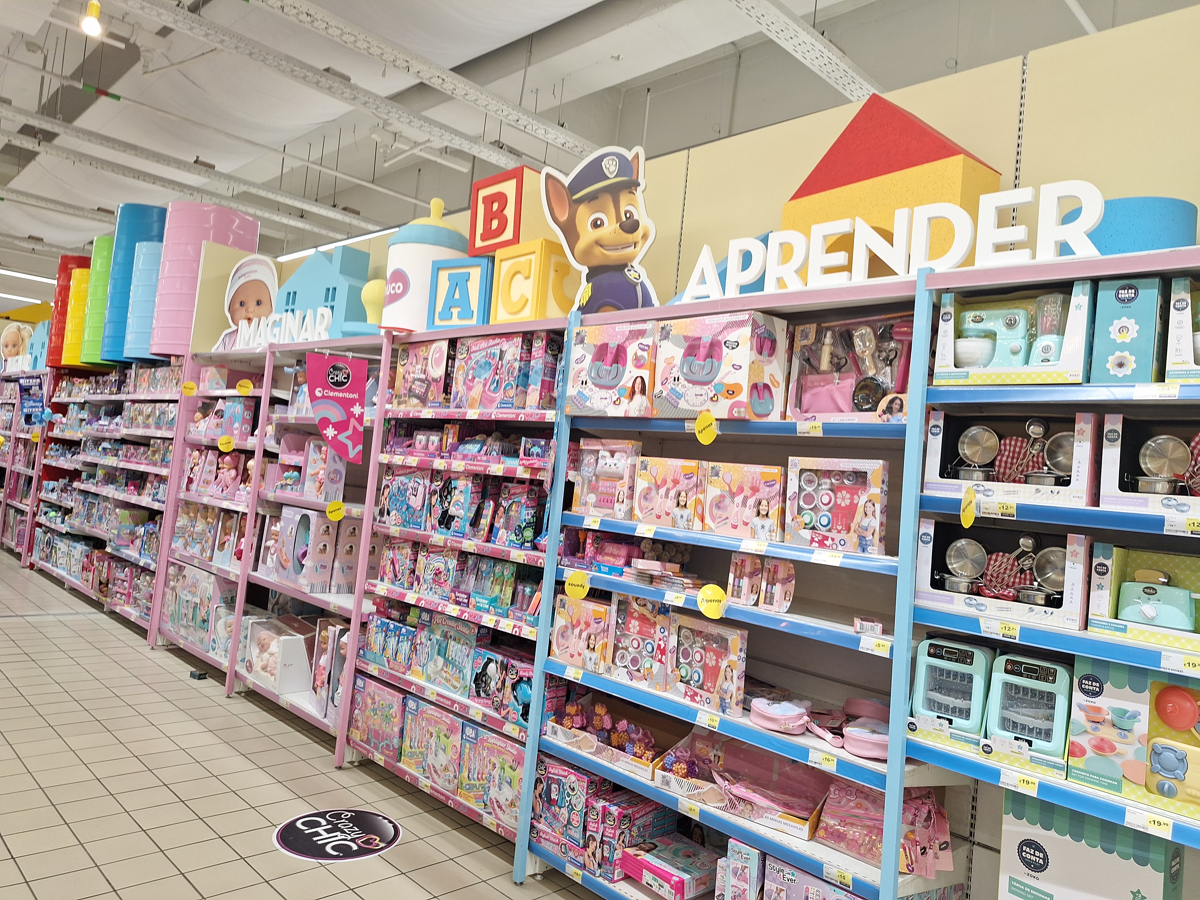continente에도 장난감 코너가 있습니다. pingo doce나 Lidle 같은 곳보다는 continente에 장난감이 훨씬 더 많아요.