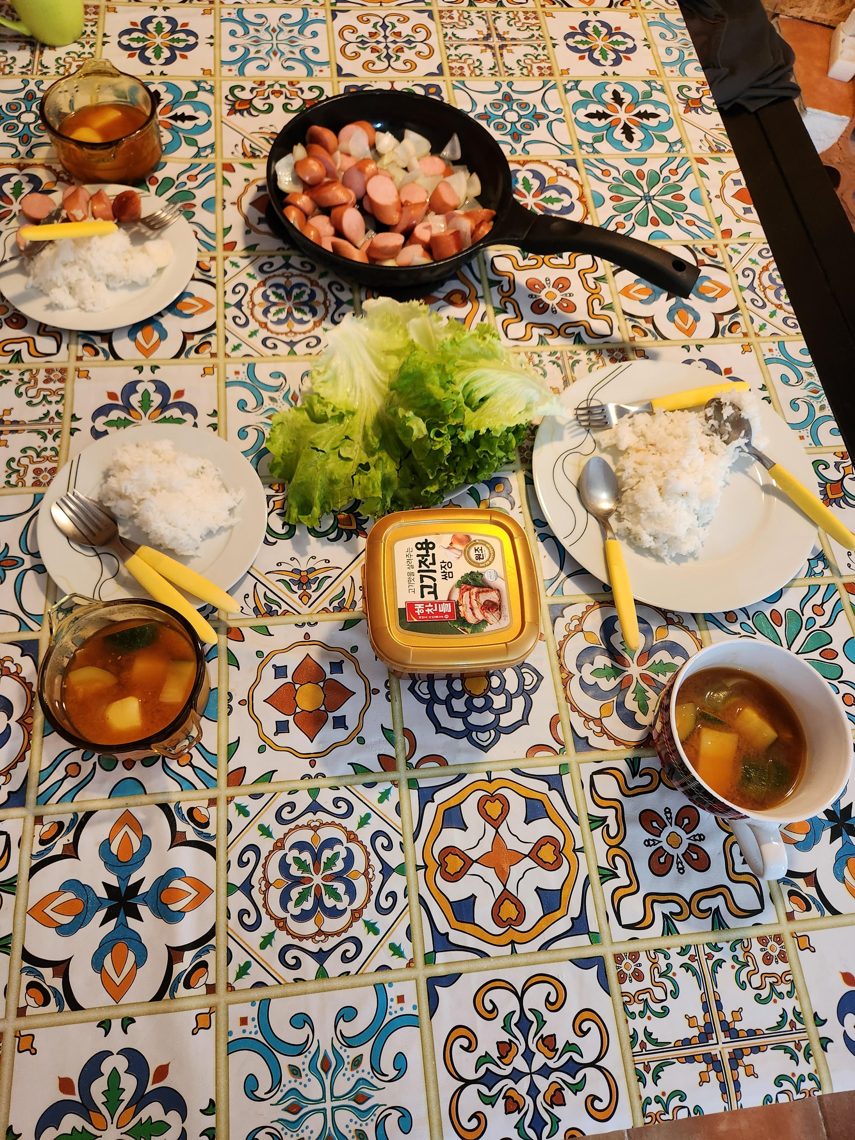 한식에 집착하는 스타일은 아니었기 때문에 한국에서 공수한 재료는 자른 미역 과 쌈장과 고춧가루 정도였다.