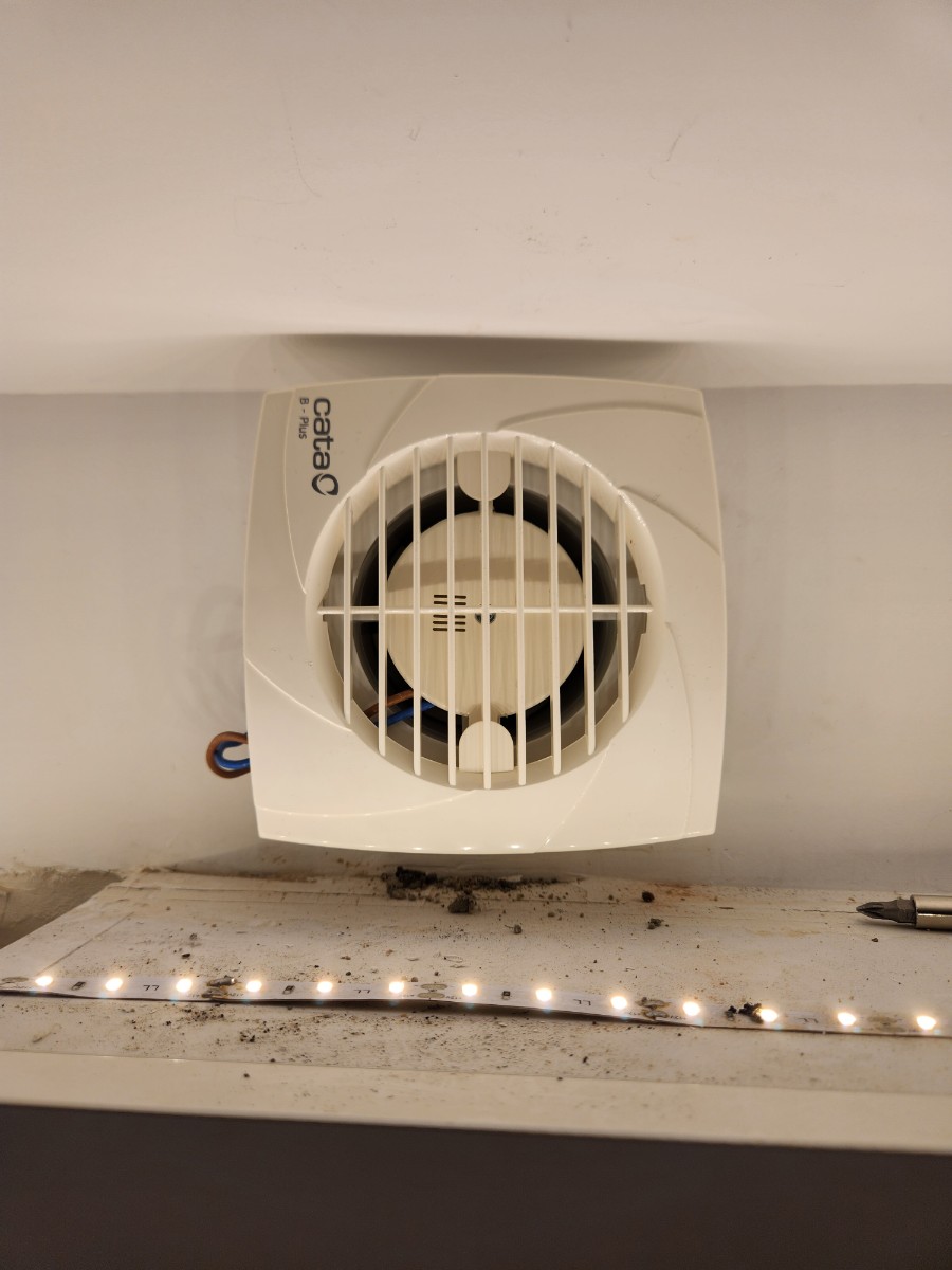 아뿔싸, 환풍기 구멍이 생각보다 작아서 새로운 환풍기가 맞지 않았습니다.