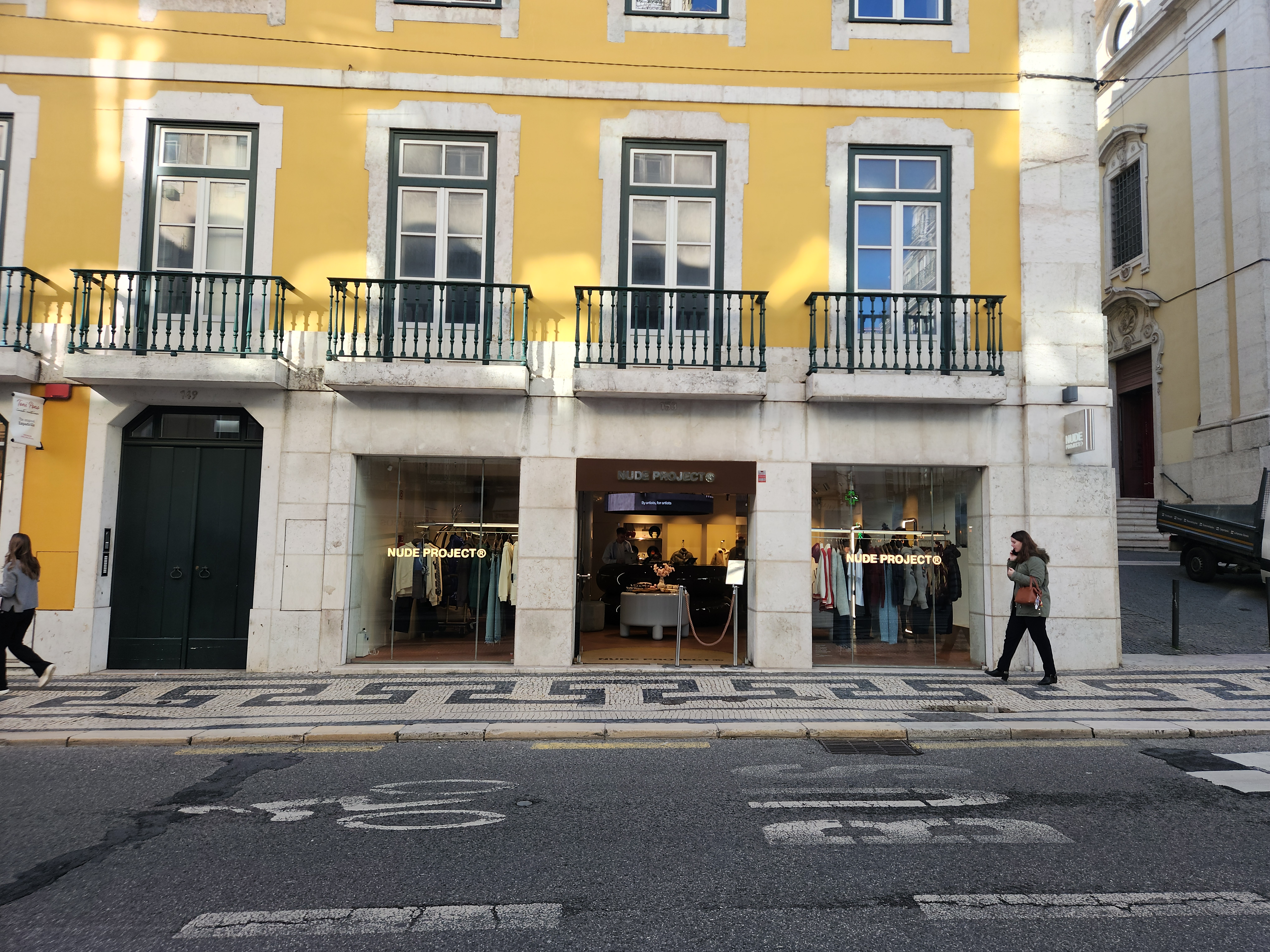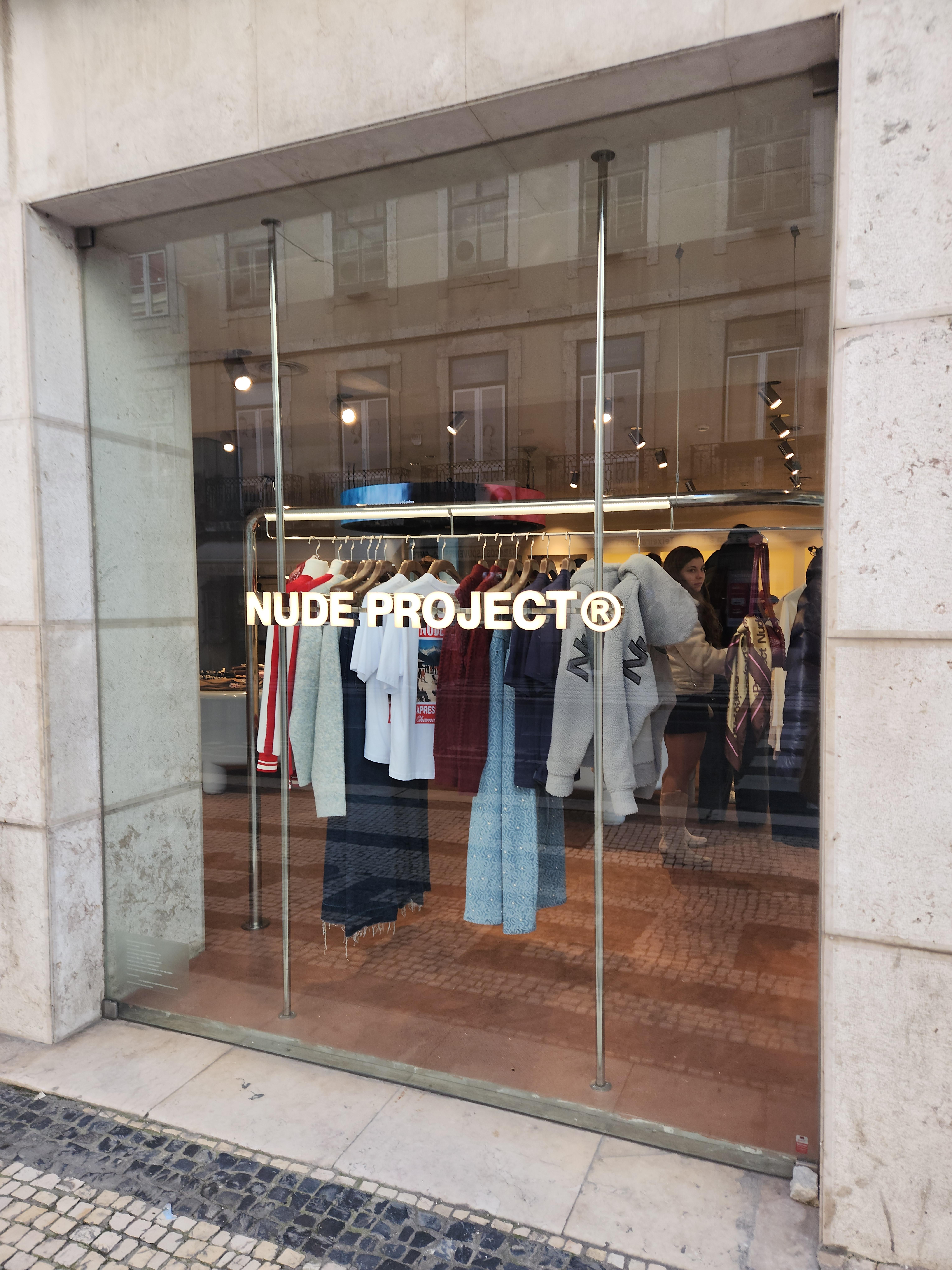 리스본 Baixa Chiaco 역에서 나오시면 오른쪽 모퉁이에 'Nude Project'매장을 보실 수 있어요.