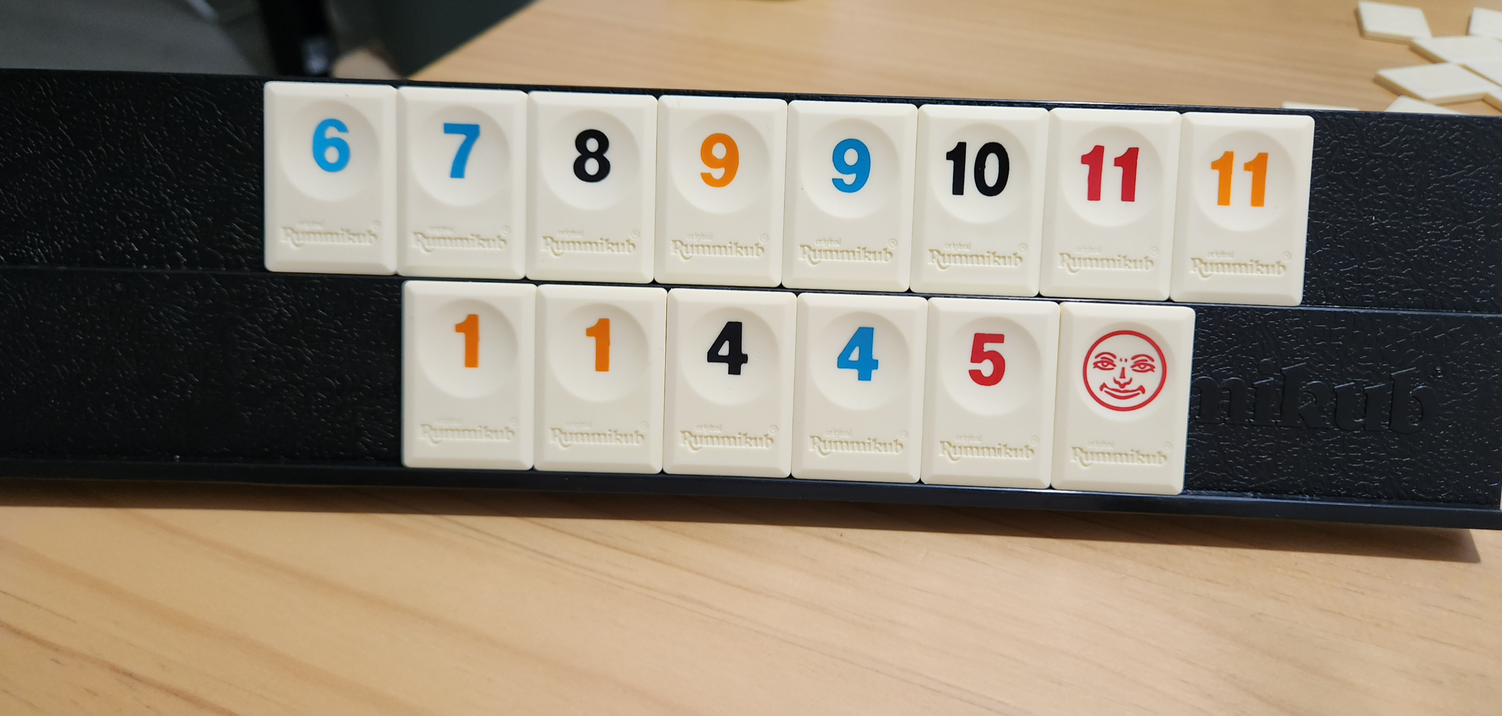 1. 각 플레이어는 타일을 14개씩 뽑아 자신의 받침대에 세워놓습니다.