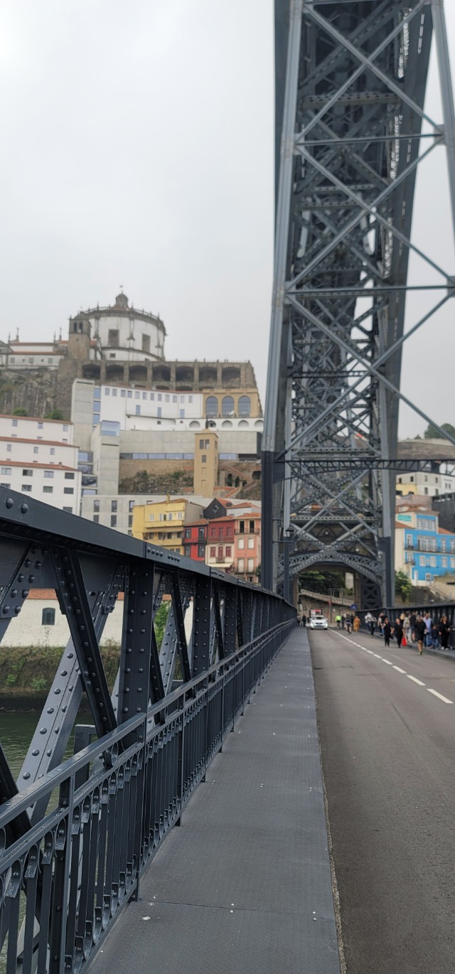 동루이스다리를 위쪽으로 걸어서 건너가면 세라 두 필라르 수도원이 나온다. 사람들은 동루이스다리가 포루투의 명물이라 꼭 건너봐야 한다고 하는데 솔직히 나는 좀 겁이 났다. 일단 높이가 무척 높고 가끔 트램이 옆으로 지나가는데 별다른 펜스도 없고 다리 바깥쪽에도 변변한 난간이 없다. 고소공포증이 있는 나는 걷기가 너무 무섭다. 해맑은 아이는 마구 뛰어다니려고 하는데 그 모습을 보는 것도 무섭다.